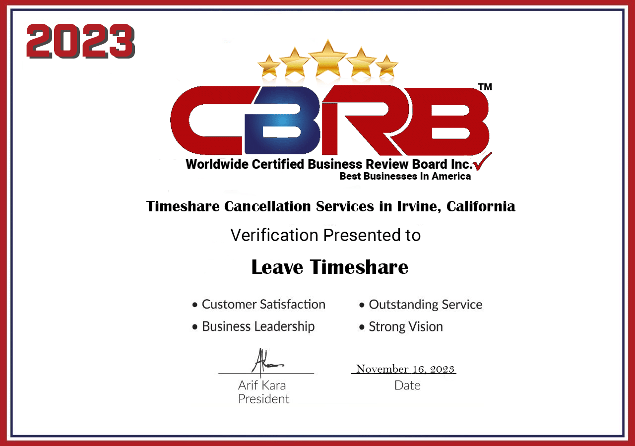 Leave Timeshare, an industry leader in timeshare exit solutions, proudly announces our latest achievement. The Worldwide Certified Business Review Board Inc. has honored us with an award, naming us one of North America’s Best Businesses for 2023. This prestigious recognition highlights not only our unwavering dedication and hard work but also underscores our innovative strategies and commitment to excellence within the timeshare sector.