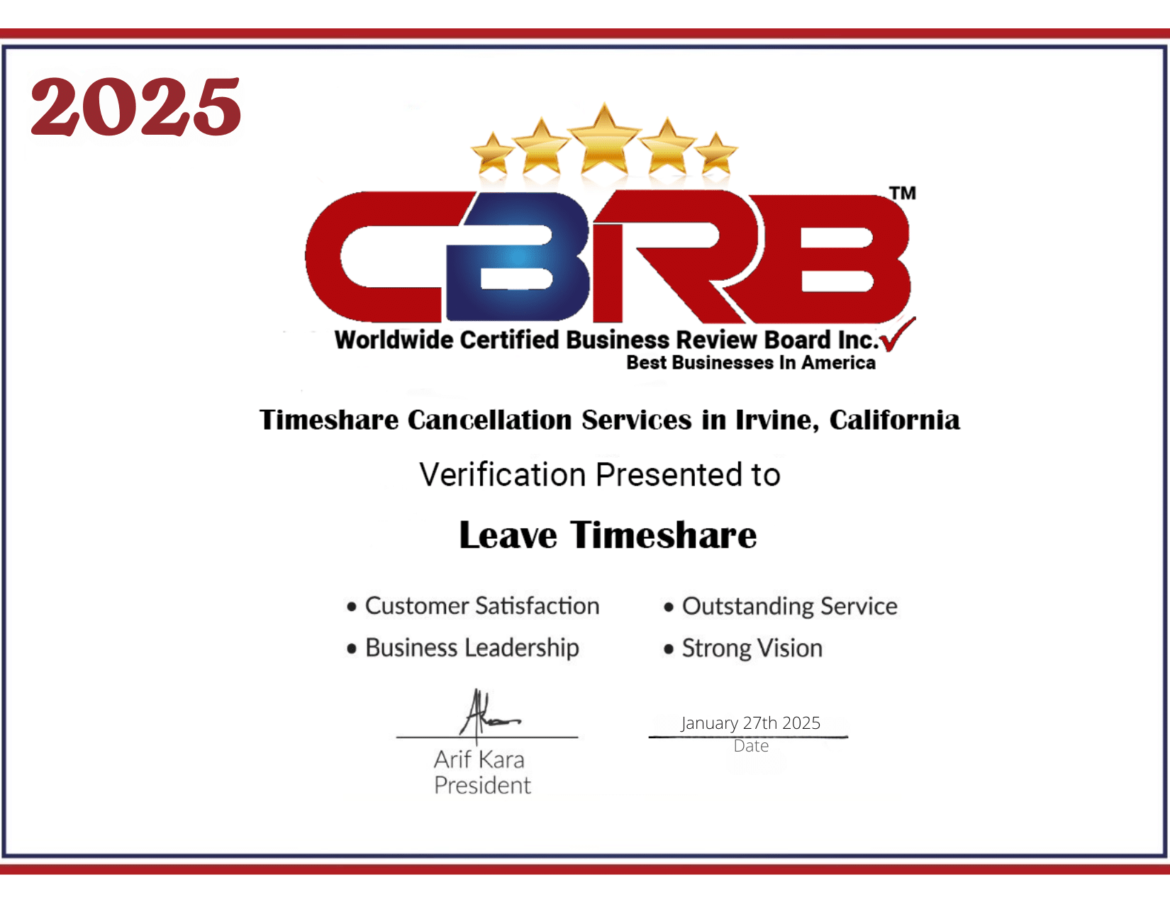 The WCBRB‘s selection process is renowned for its thoroughness. To qualify as a Best Business in America, companies undergo extensive reviews, which include evaluations of customer satisfaction, ethical practices, operational excellence, and overall industry impact. Being re-approved for this award not only validates our dedication to these principles but also inspires us to continue leading with integrity and purpose. It is a testament to the hard work and passion of our entire team, whose efforts have propelled Leave Timeshare to new heights year after year.